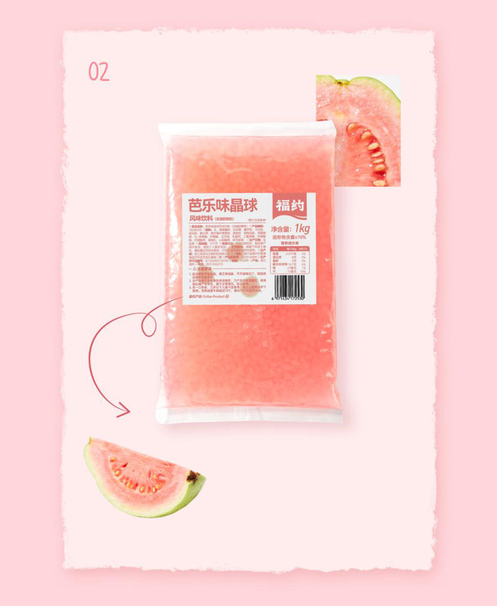 Designed for premium bubble tea menus, guava crystal balls elevate both texture and visual appeal.